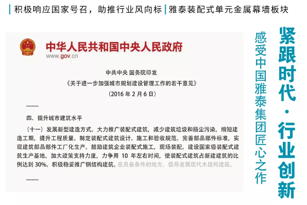規(guī)模式的生產(chǎn)車間、全新的生產(chǎn)流程、更加合理的工藝布局及大批優(yōu)秀的管理人才和高級技術(shù)骨干,使得雅泰集團(tuán)迅速成為行業(yè)內(nèi)單個工廠產(chǎn)能最大、技術(shù)水平最高的鋁單板企業(yè)。近年來,通過自身的發(fā)展與努力,雅泰用實(shí)力贏得了業(yè)界的良好口碑,眾多龍頭建筑商、幕墻公司均與雅泰達(dá)成了長期合作意向。
