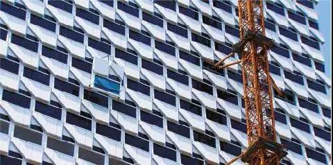 (第一塊雅泰裝配式單元幕墻板塊順利起吊安裝)