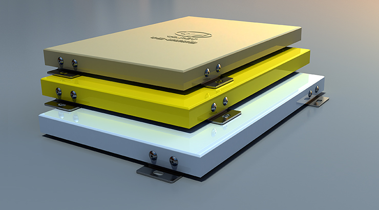 烤瓷鋁單板采用鋁合金板為基材,表面涂裝水性陶瓷涂料,通過(guò)加熱固化方式,形成性能與陶瓷相似的涂層,具有耐高溫、不燃性、超強(qiáng)耐候、易清潔、高硬度、抗劃傷、抗菌等優(yōu)勢(shì),且不含傳統(tǒng)有機(jī)溶劑,屬于綠色環(huán)保材料。