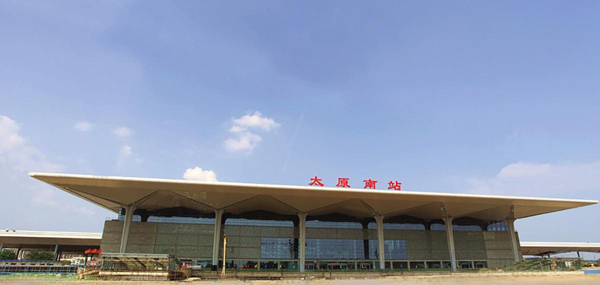 太原南站位于太原市小店區(qū)北營(yíng),東臨東山過境高速公路,西接太原武宿國(guó)際機(jī)場(chǎng),南依南環(huán)高速公路,北靠長(zhǎng)風(fēng)大街,地處國(guó)家級(jí)太原高新技術(shù)開發(fā)區(qū)、太原經(jīng)濟(jì)技術(shù)開發(fā)區(qū)及武宿物流區(qū)等三大園區(qū)交叉輻射的核心地段。占地面積45公頃,站房主體結(jié)構(gòu)為地上兩層地下一層,建筑面積約20.06萬平方米,其中客運(yùn)站房建筑面積5.5萬平方米以上,車場(chǎng)規(guī)模為10臺(tái)22線,設(shè)計(jì)年發(fā)送旅客量可達(dá)4000萬人次以上。工程投資估算總額約30億元以上,由鐵道部和山西省共同出資建設(shè),是山西省內(nèi)第一座高標(biāo)準(zhǔn)現(xiàn)代化的大型鐵路客運(yùn)站,為太原市標(biāo)志性建筑之一。